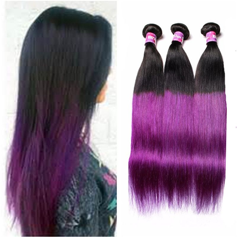 1b Morado Peruano Virgen Paquetes De Pelo Color De Pelo De Ombre Dos Tonos Extensiones De